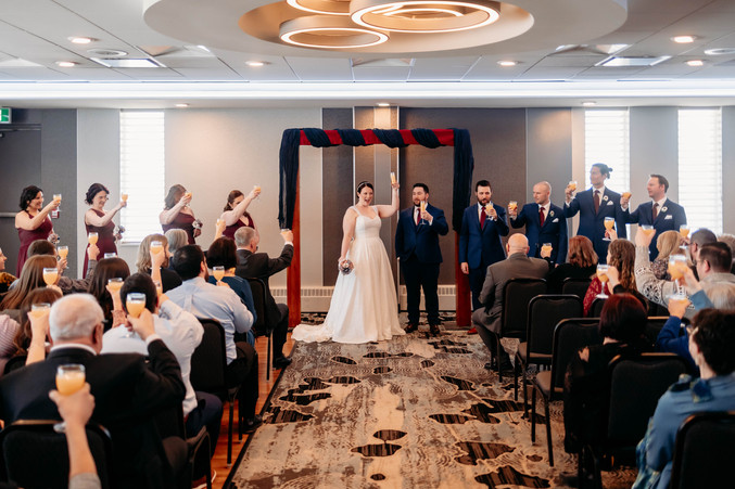 Despite the windy and chilly weather, the couple and their wedding party braved the elements to capture stunning photos in the snow. Taking a break at Leo's Tavern, where they had their first date, provided a much-needed warmth and brought back fond memories. Warm food, spicy shots and great company took over the back room where we celebrated Mat & Kate.