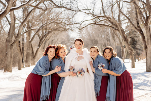 Kaetlyn and Mat's winter wedding was nothing short of magical. With a love for the snow and a sparkly dress that made her look like a Disney princess, Kaetlyn was a vision of winter wonder. Mat stood by her side, radiating love and warmth on this chilly day. Happily surrounded by their siblings and friends who were part of their awesome wedding party.