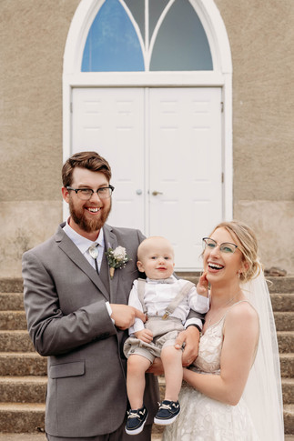 On the outskirts of Kipling, Grace and Jesse sealed the deal in a wedding that was pure love. With their one-year-old son Everette stealing the show as the adorable ring bearer, escorted by his cool uncle, the day was off to a charming start at the St. Huebert Church. The ceremony, set against a backdrop of a majestic St. Mary statue, oozed a classy rustic vibe that perfectly matched their style.