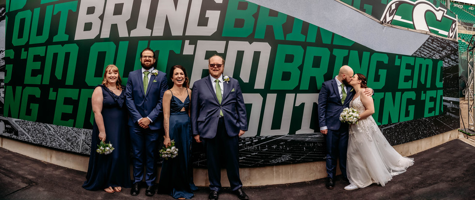 With their siblings and friends standing by their side, John and Jenna's ceremony was a testament to the bonds of love and friendship that they held dear. And thanks to John's connection with the Saskatchewan Rough Riders, the newlyweds had the opportunity to capture unforgettable moments at the stadium, where they ran and played on the field, basking in the joy of their love.
