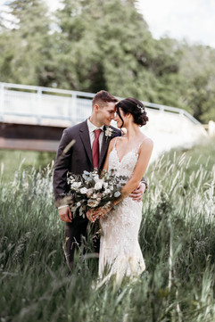 All of the details of their day were beautifully thought out. From the lovely locations (Bed & Breakfast for getting ready, Wakamow Park for the ceremony and The Sportsman Centre for the reception), to the stunning florals (including their dog Ruby's decorated collar) all the way to their cake topped donut tower. Perfection. They even had the Moose Jaw Trolley provide transportation.