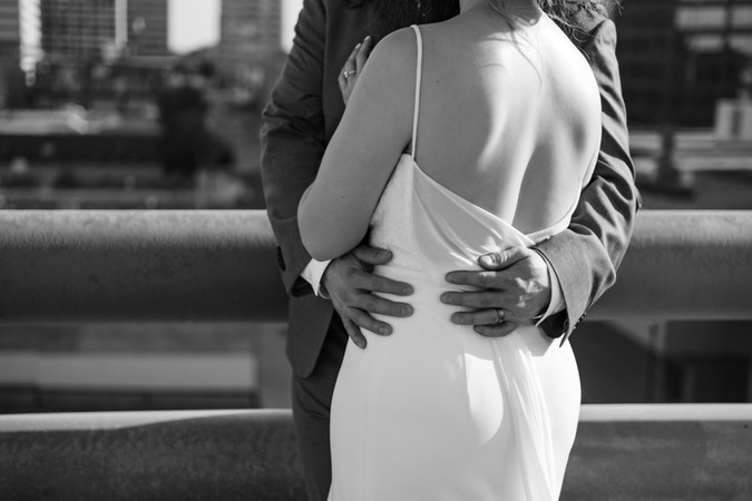Of course, no road trip-style wedding day would be complete without snacks. On the way back into the city, Karmin and Danny stopped at Crème Café for treats and cold drinks, and even popped into 7/11 before heading up to the rooftop of the Delta for a few stunning couple portraits with the city skyline.