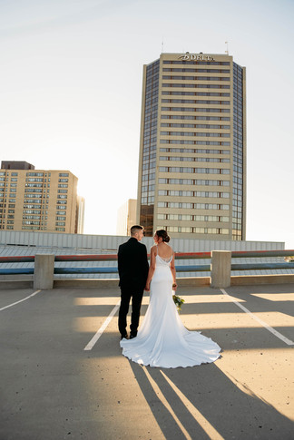 As the sun began to set, we moved to the rooftop for some romantic couples photos, capturing the love and connection between Skye and Dayton in a stunning setting.